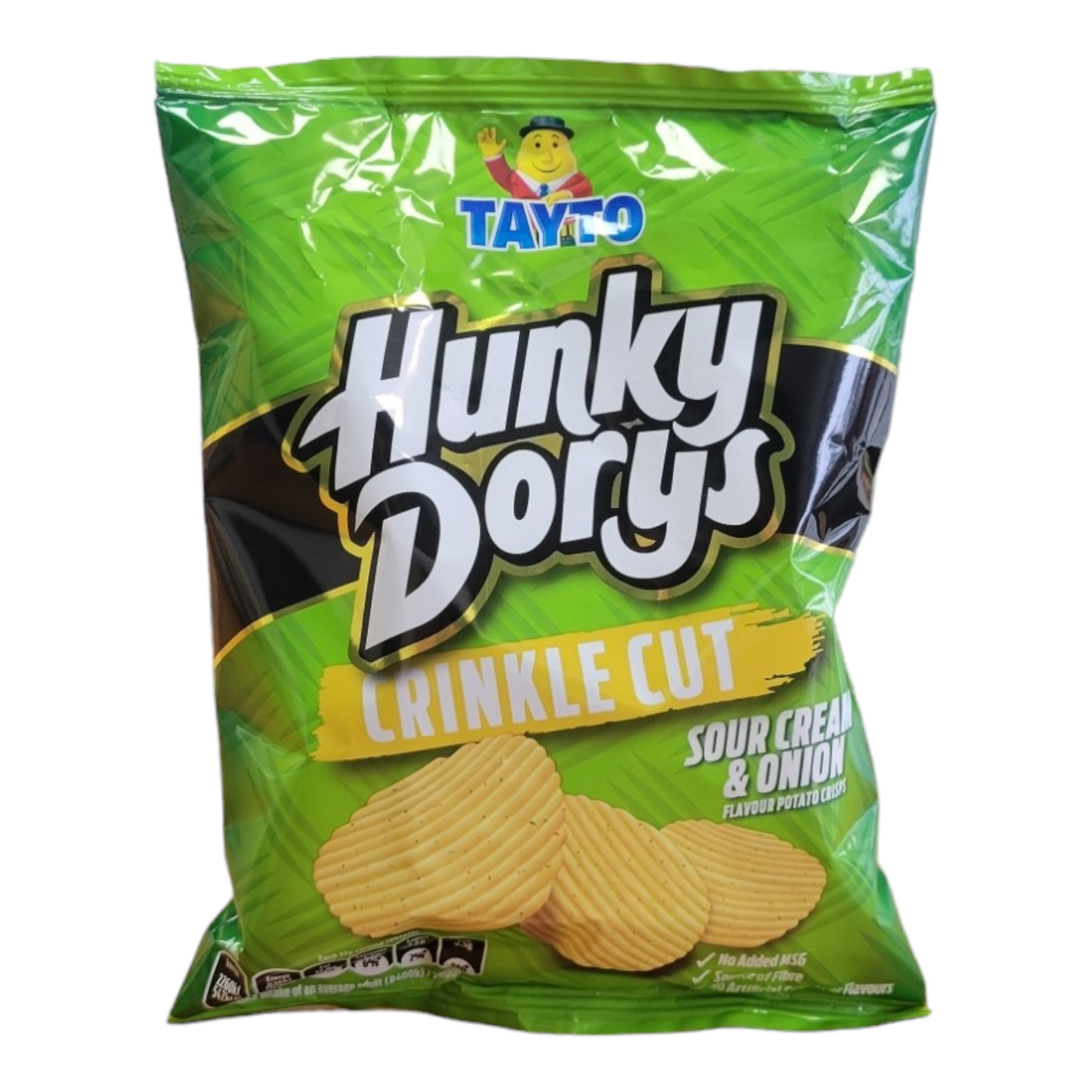 Crunch into the fun with Hunky Dorys Sour Cream and Onion crinkle cut crisps! Each bite delivers a zesty tang of sour cream paired with a savory onion kick, all wrapped in satisfyingly crunchy ridges. Perfect for snack time or sharing with friends, these crisps bring a playful twist to your taste buds. Grab a bag and let the flavor party begin!
