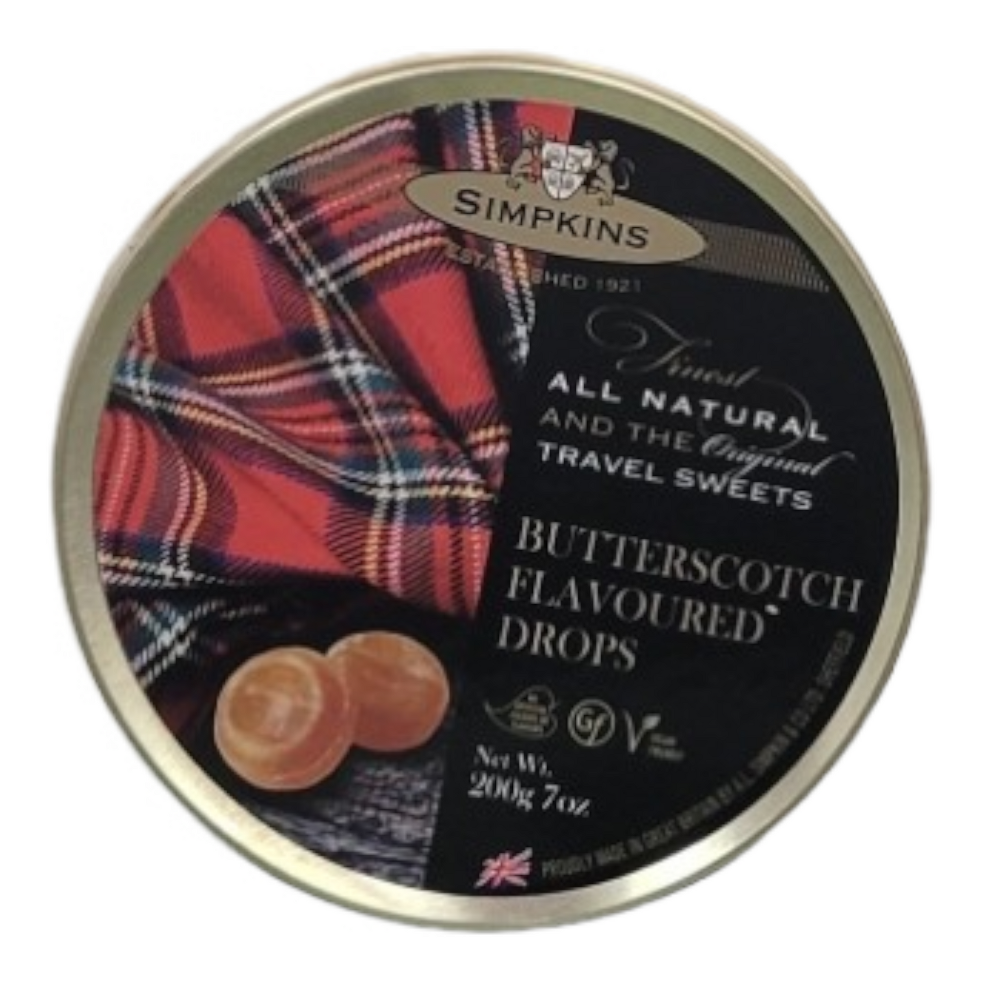 Simpkins Butterscotch Flavoured Travel Sweets 200g Tin
