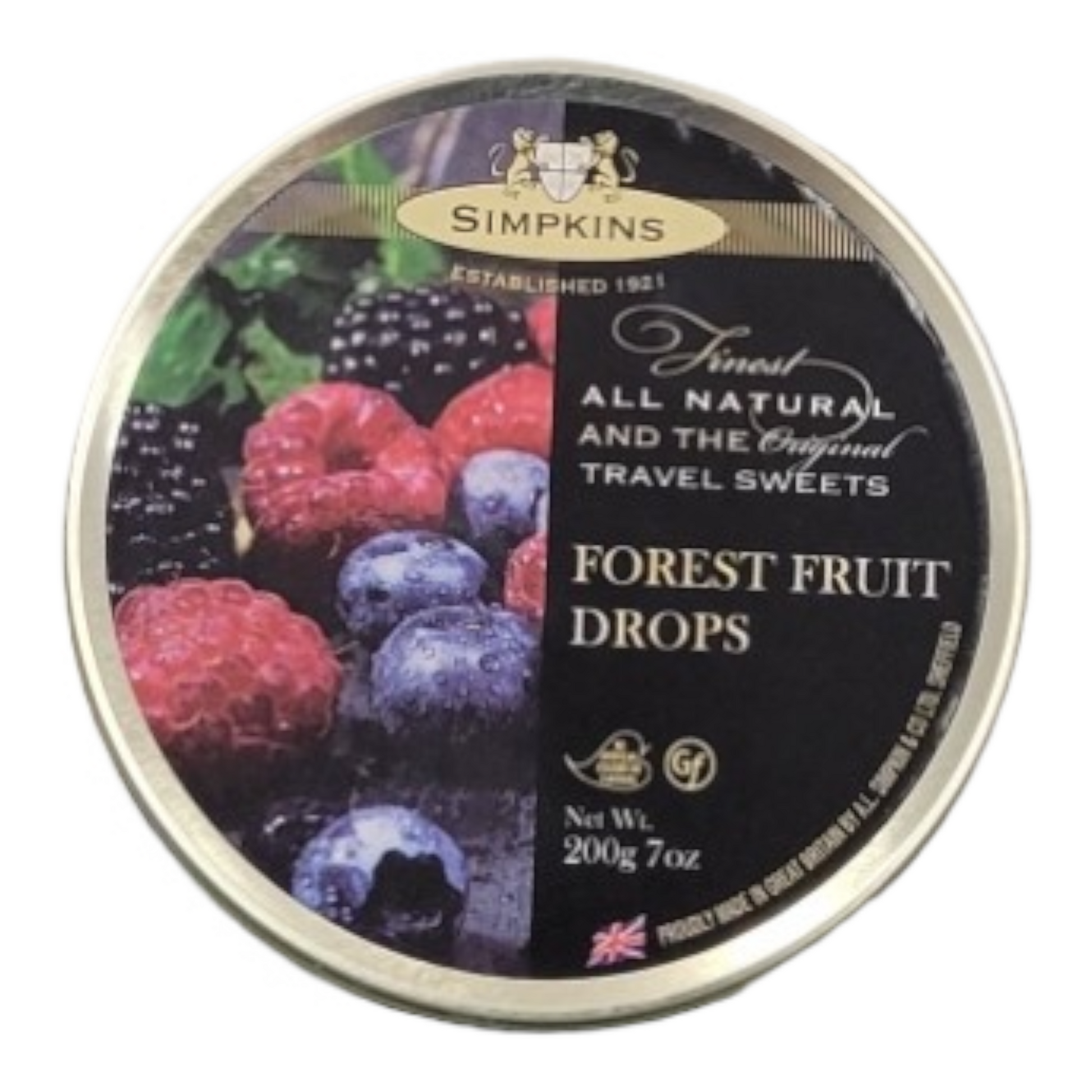 Simpkins Forest Fruit Drops Travel Sweets 200g Tin
