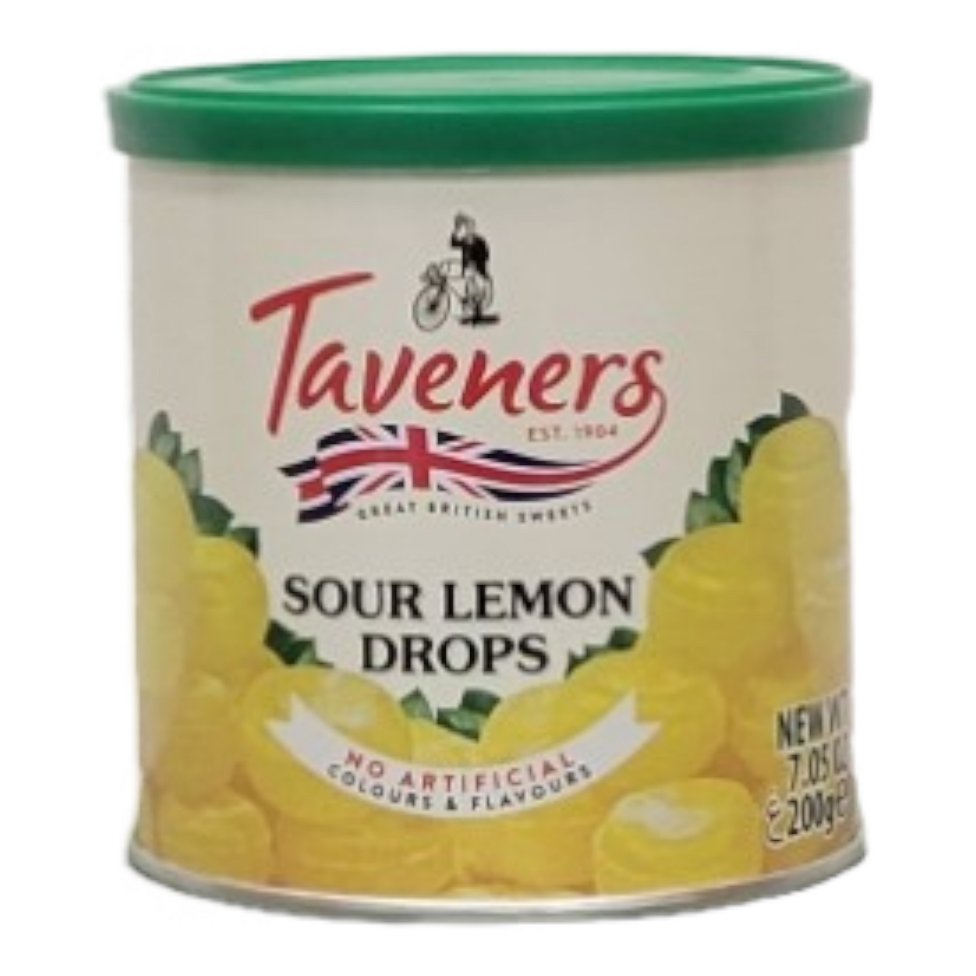 These Taveners Tins Sour Lemon candy drops offer a deliciously tangy and refreshing treat. Made with real lemon juice, they provide a pure and intense sour flavor that's perfect for satisfying cravings or adding some zing to your palate. Each tin contains a generous amount of candy drops, making them perfect for sharing or indulging on your own.