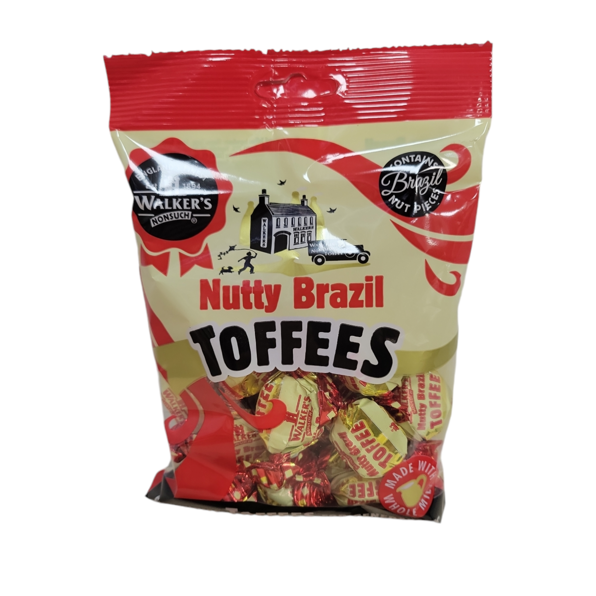 Expertly crafted with chewy toffee and irresistible Brazil nuts, Walker's Nutty Brazil Nonsuch Toffee offers a unique and delicious treat. Indulge in the rich flavors and textures of this 150g package, perfect for satisfying cravings and providing a source of healthy, natural protein.